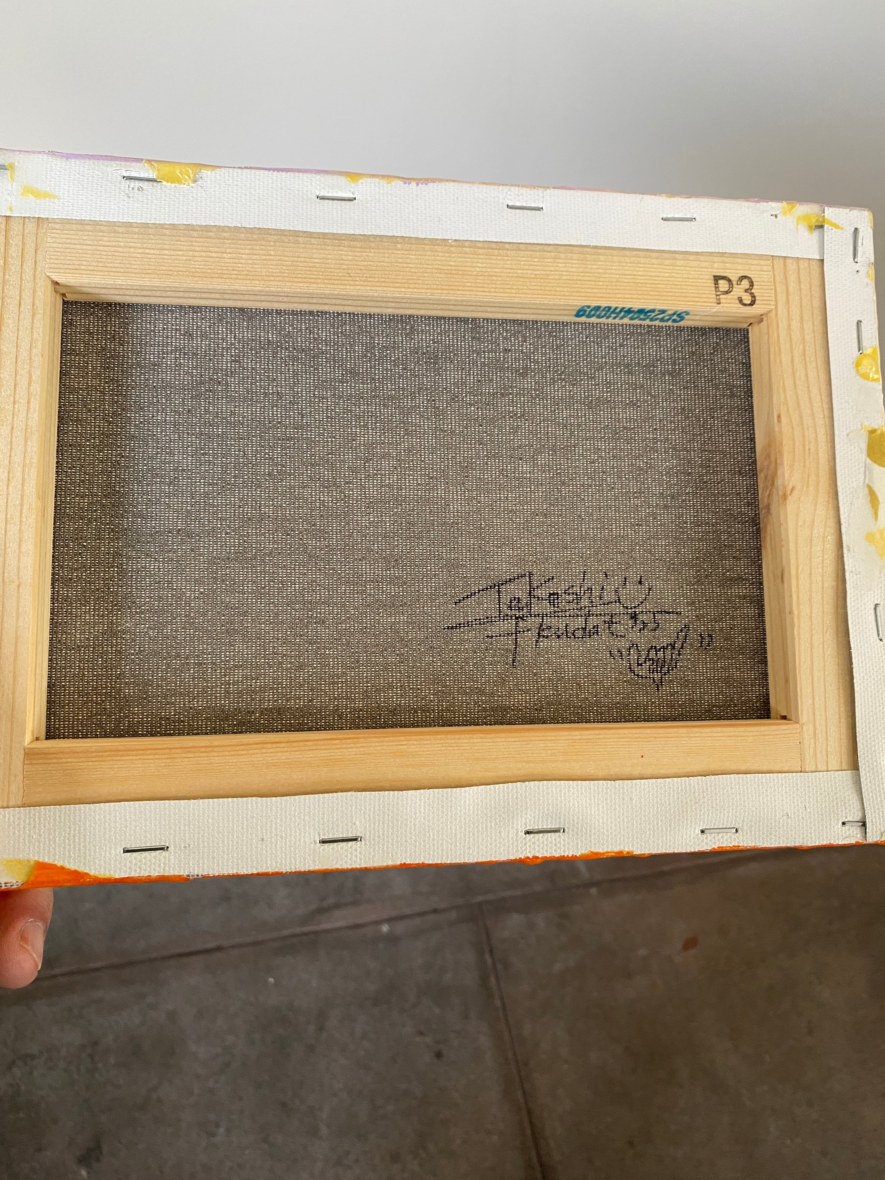 The canvas was colored with acrylic paint, the cutting sheet was cut using only a craft knife, then affixed to the canvas and coated with resin.