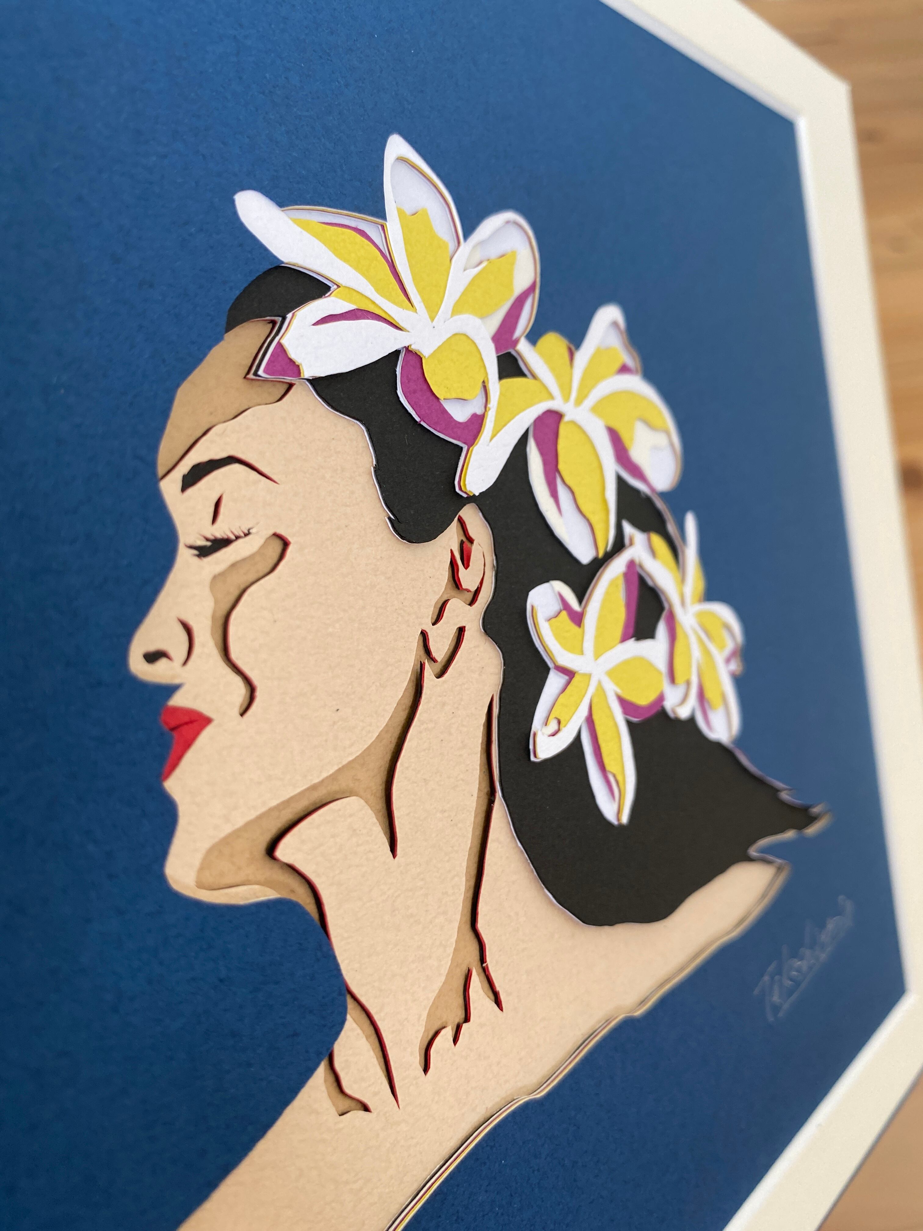 The technique of cutting paper in layers gives it a three-dimensional appearance depending on the angle of view, allowing the viewer to enjoy various expressions.