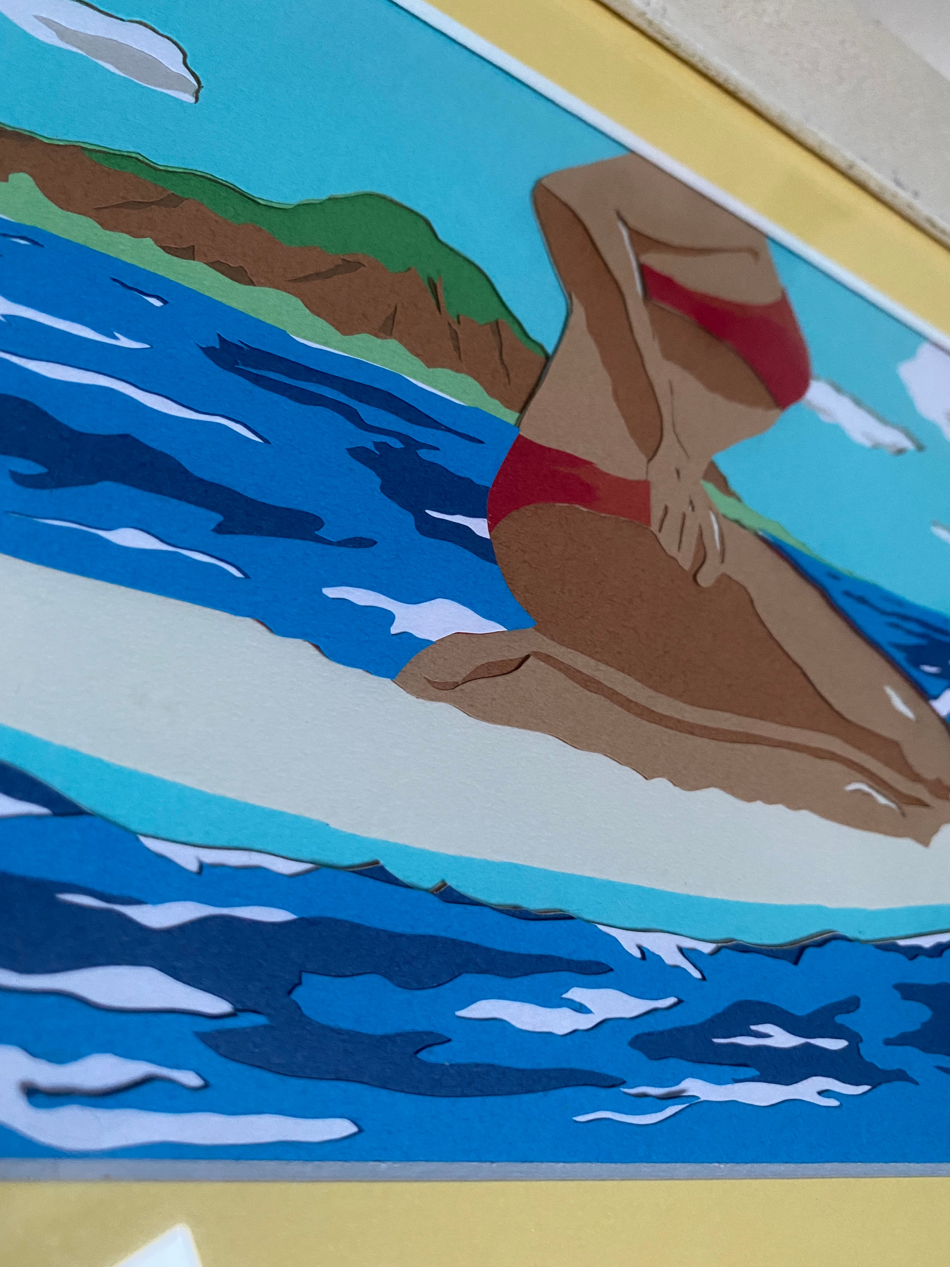紙を重ねて切る技法で、見る角度によっては立体的に見え、いろんな表情が楽しめます。